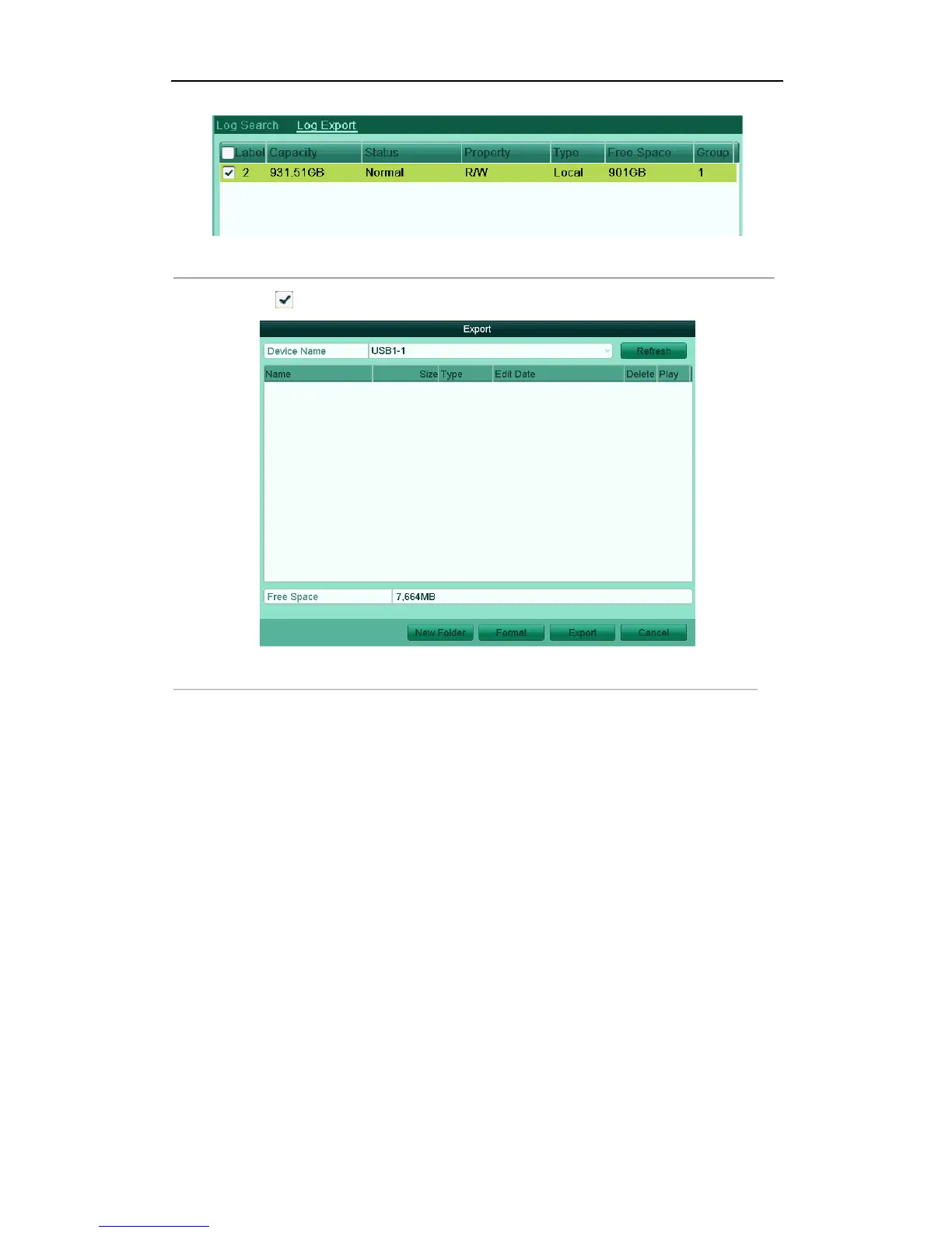 (2) Check checkbox to select the HDD and click Export to enter the export interface.
