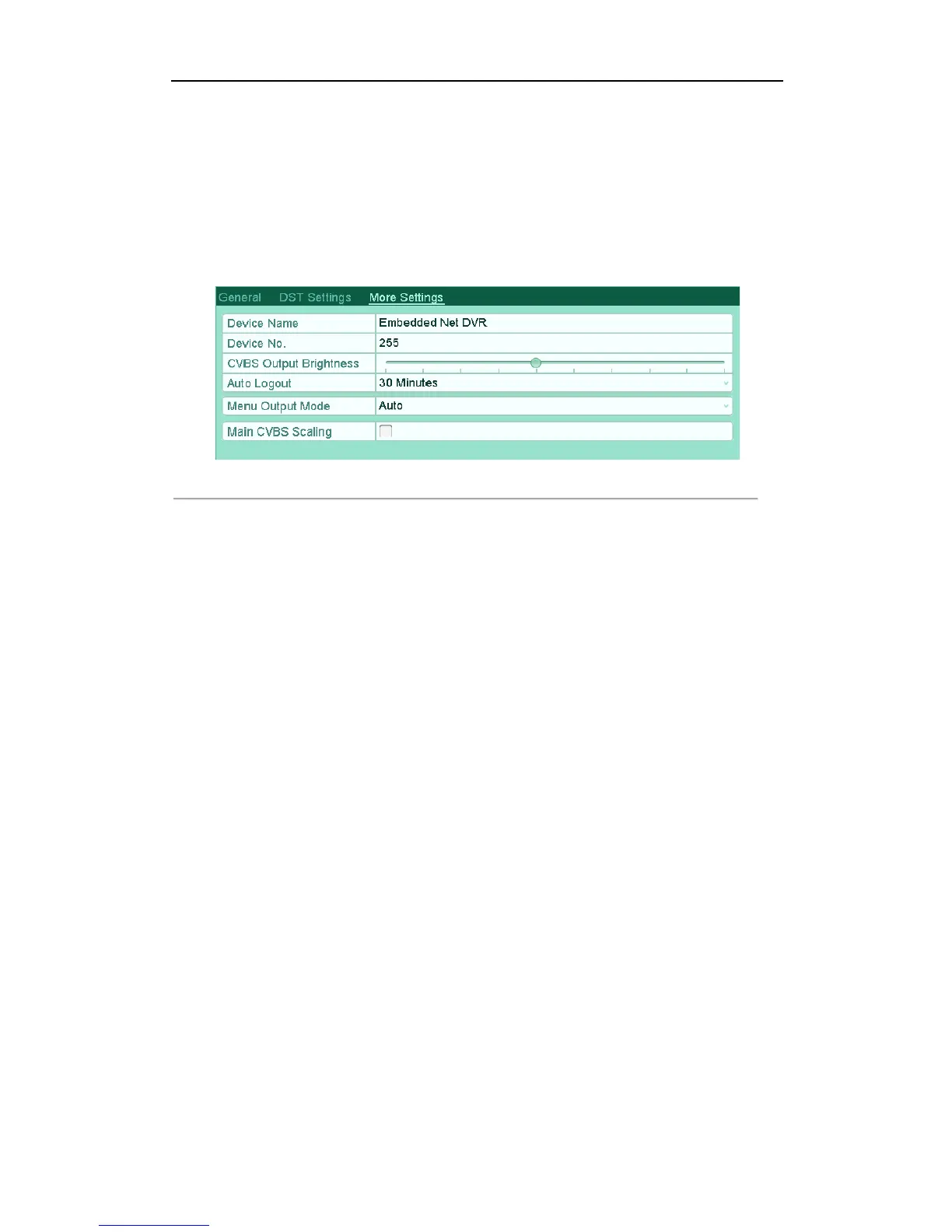 • Operation Timeout: Set timeout time for menu inactivity. E.g., when the timeout time is set to 5