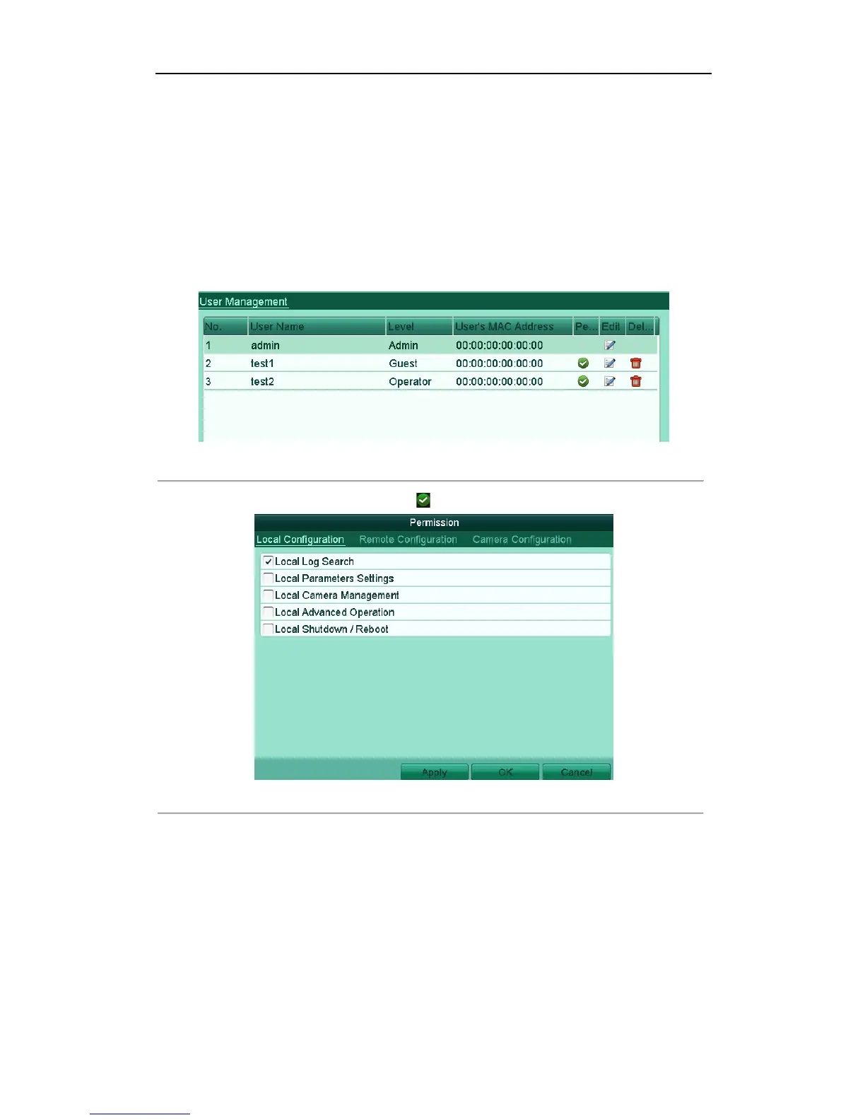 6. Set the operating permission of Local Configuration, Remote Configuration and Camera Configuration for