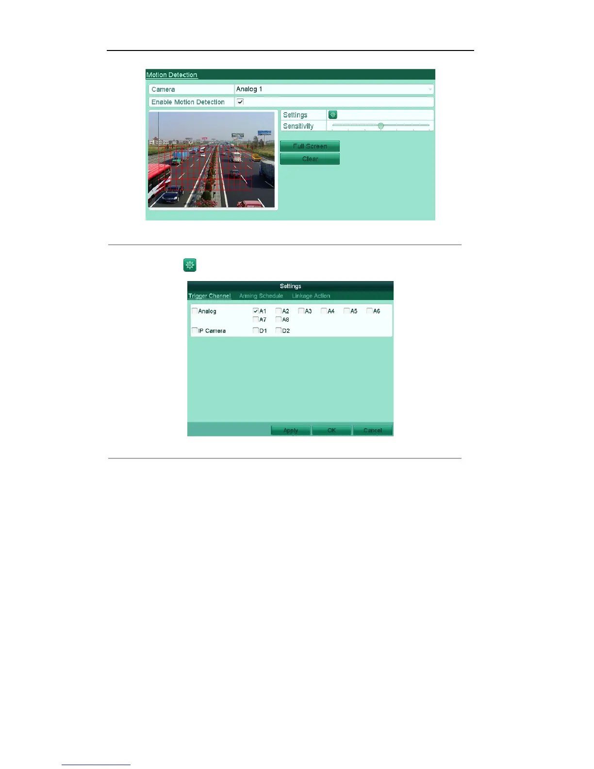 5) Select the channels which you want the motion detection event to trigger recording.