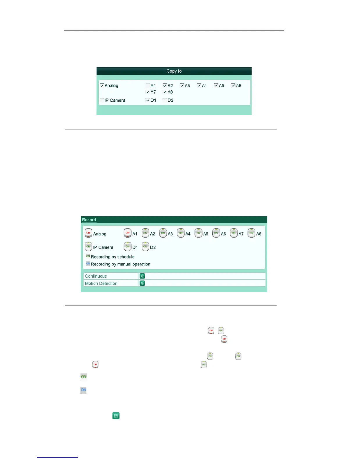 Follow the steps to set parameters for the manual record. When using manual record, you need to manually