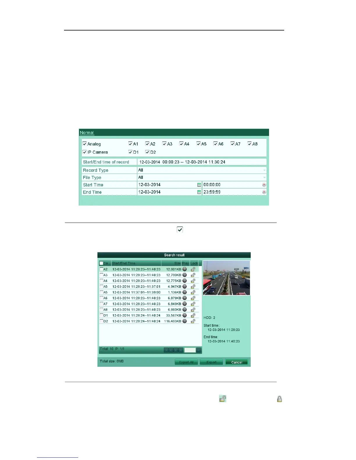 Note: The record files of which the recording is still not completed can’t be locked.