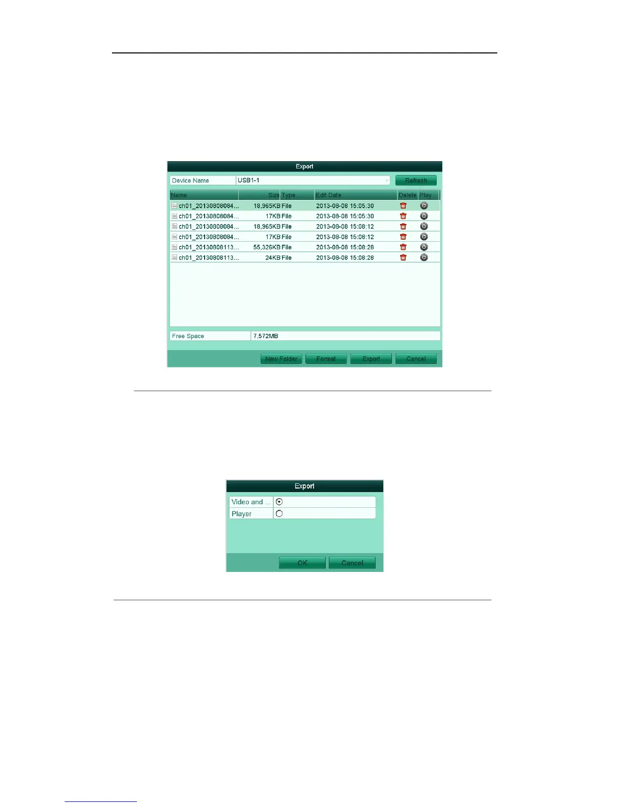 select to export the video files or the player to the backup device. Click OK to confirm.