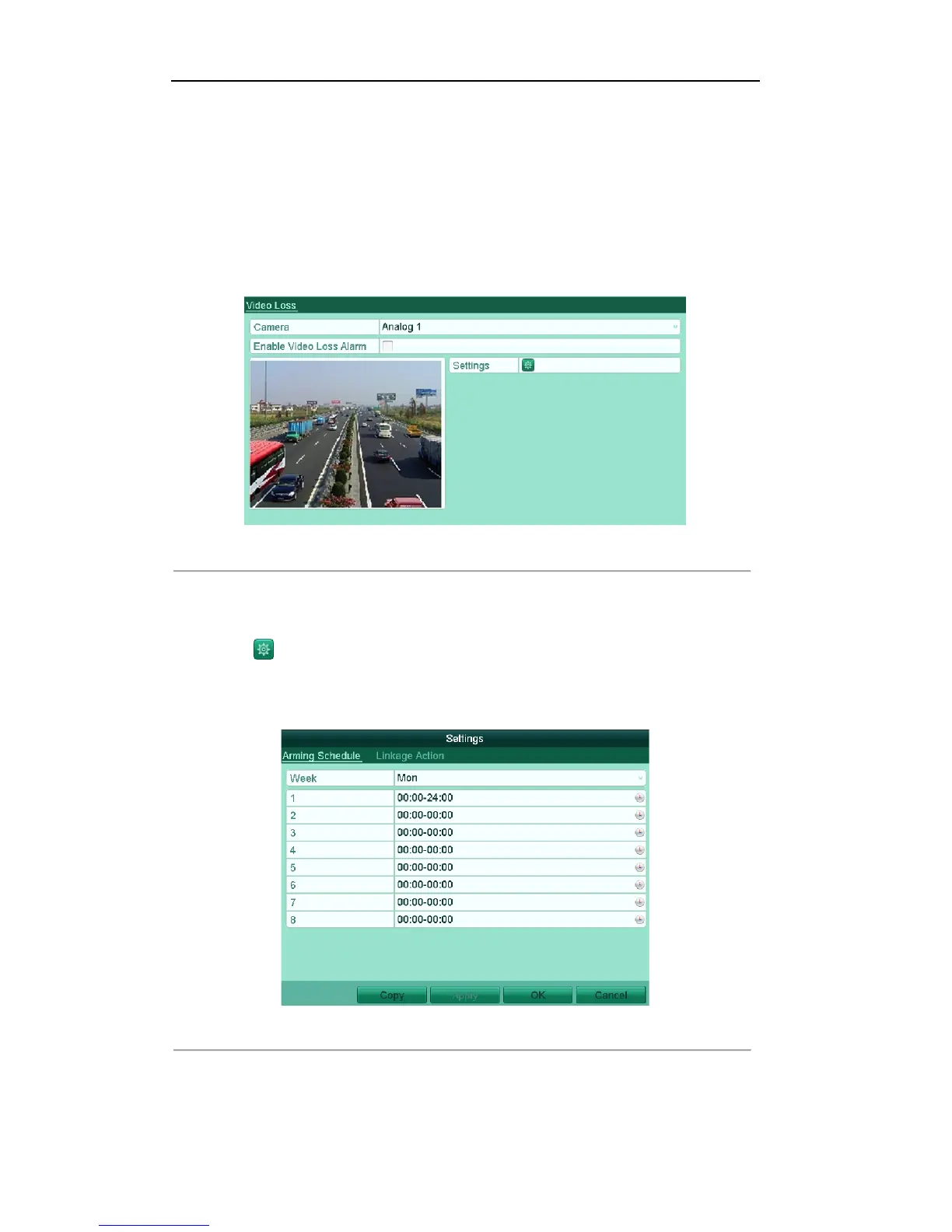 Figure'8.7'Set'Arming'Schedule'of'Video'Loss