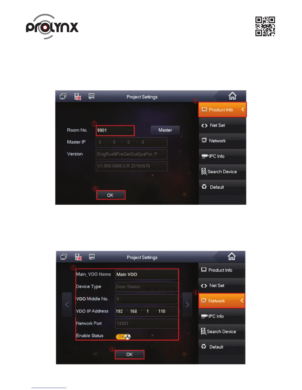 a) On the main Indoor Monitor menu, from System->Project, you can input project password