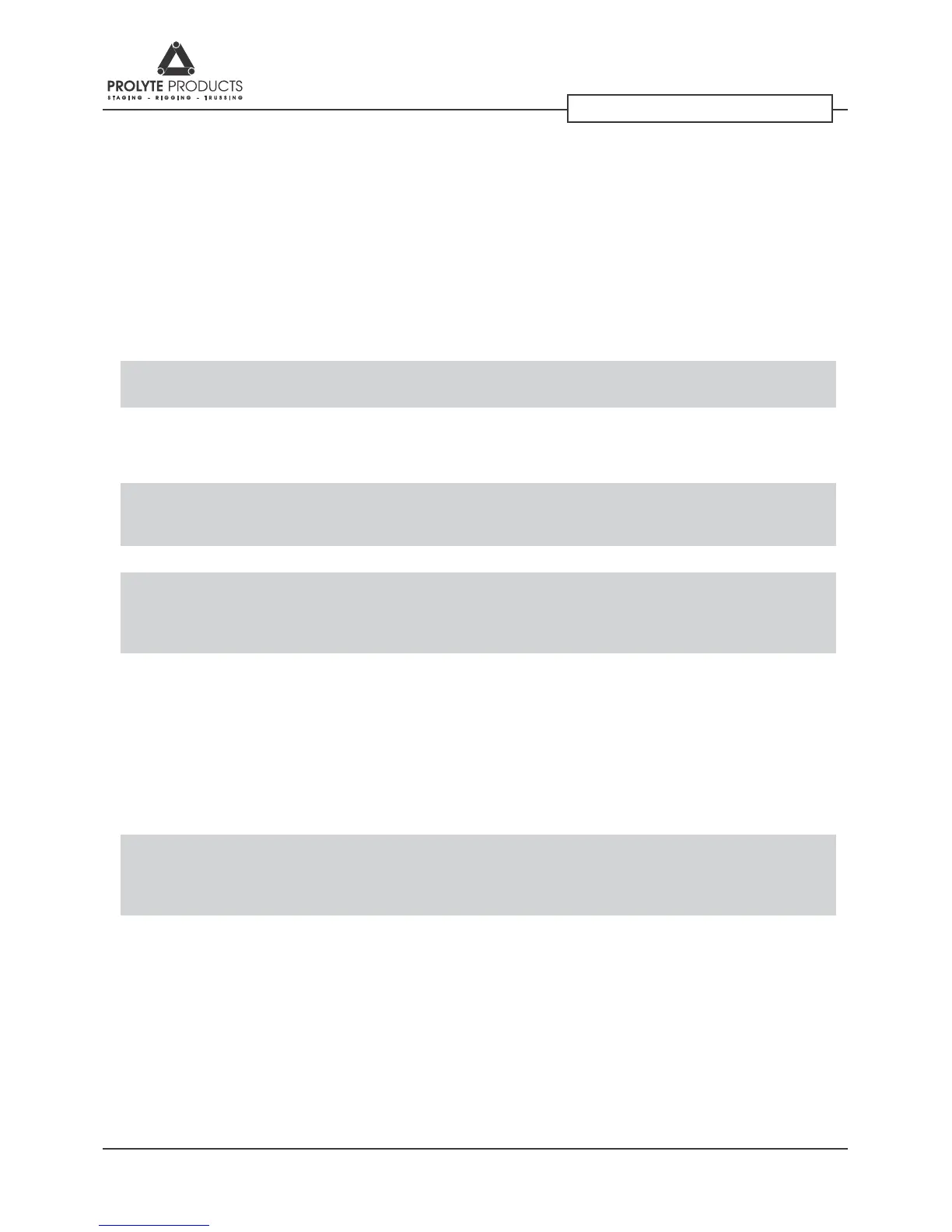 Prolyte has made every effort to ensure the accuracy of this manual, no liability will be accepted for errors. Prolyte reserves the right to change or alter