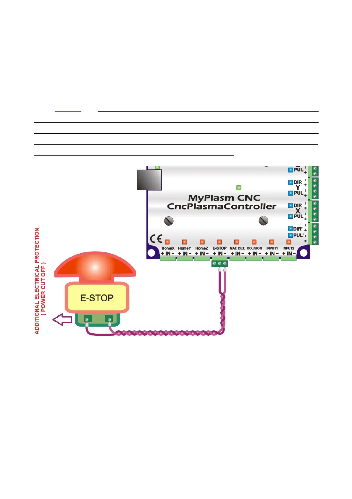 The controller has a emergency stop push=buton input labeled