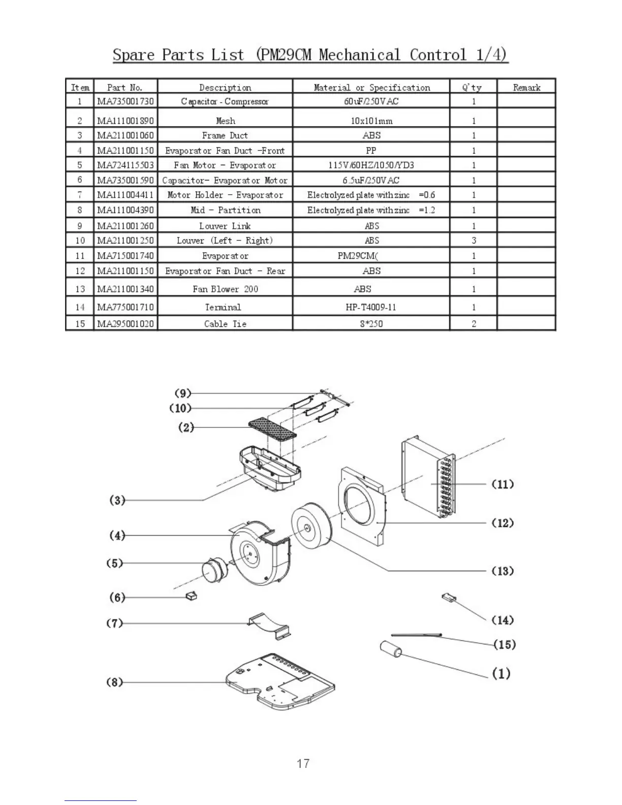 Promac PM22CM - Spare Parts List - PM29 CM Mechanical Control (1;4)