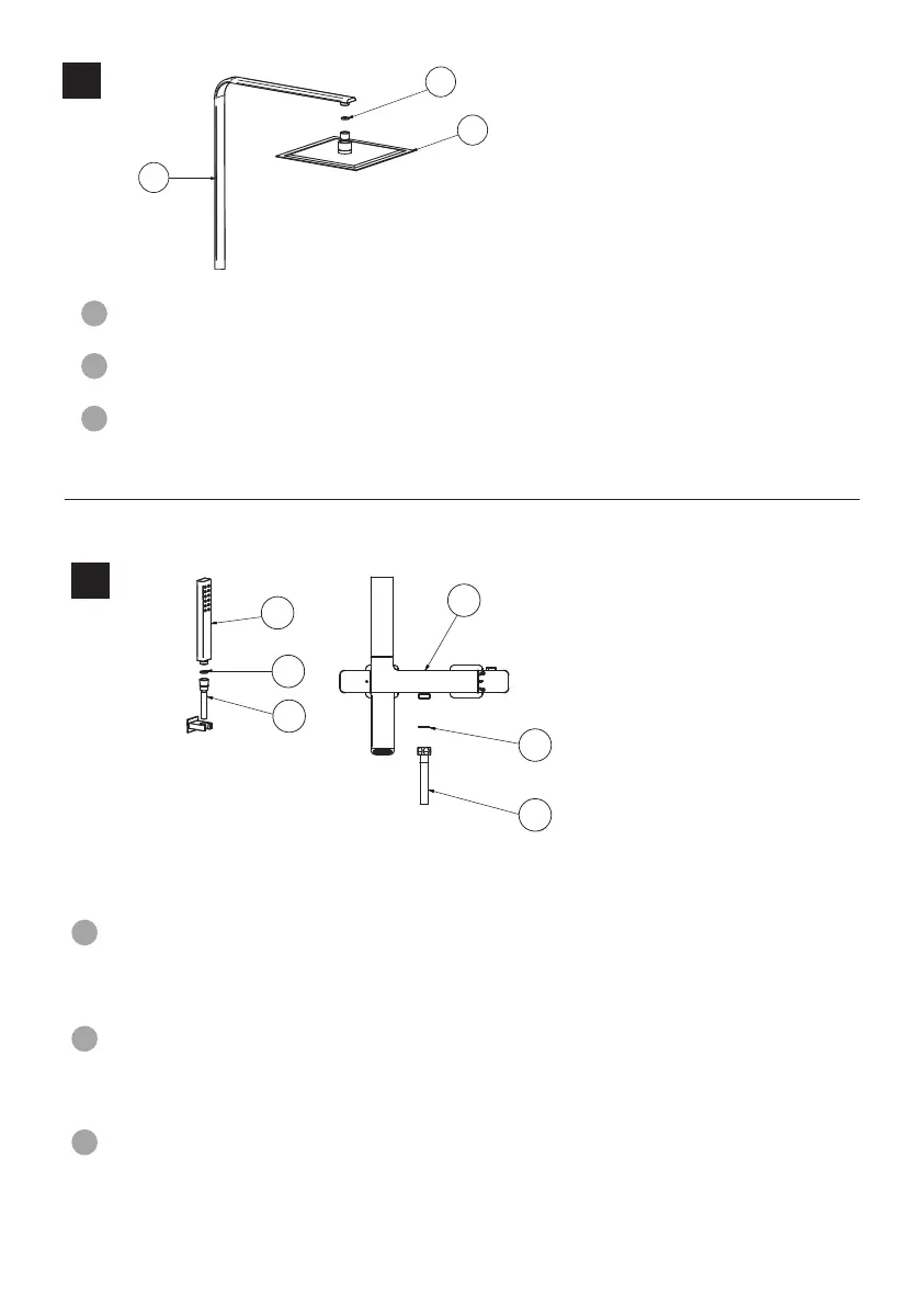 Connect the nut on the shower exible hose (17) to the body (1) ensuring a water tight