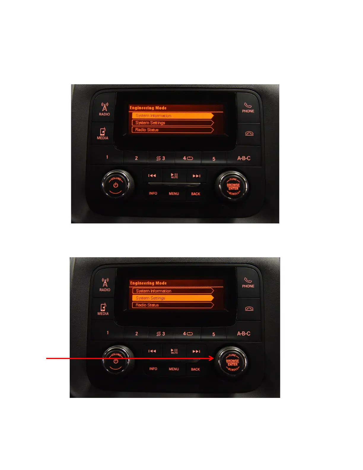 2. After approximately 6 seconds, the ENGINEERING MODE screen will