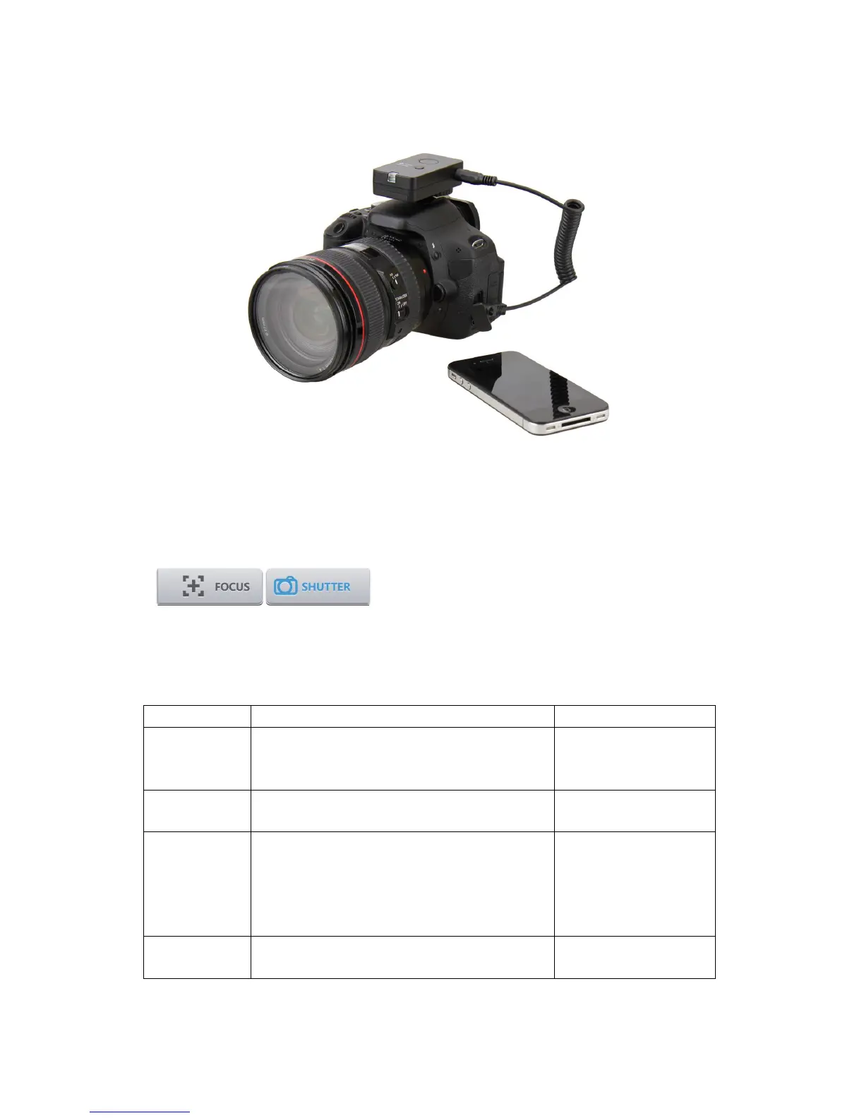 Press FOCUS, the camera will focus. Press SHUTTER to take a photo.