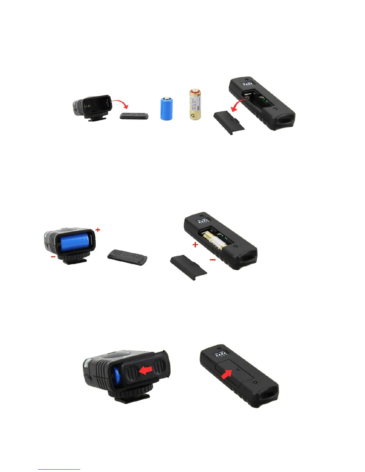 1. Slide the battery covers in the direction of the arrow to remove.