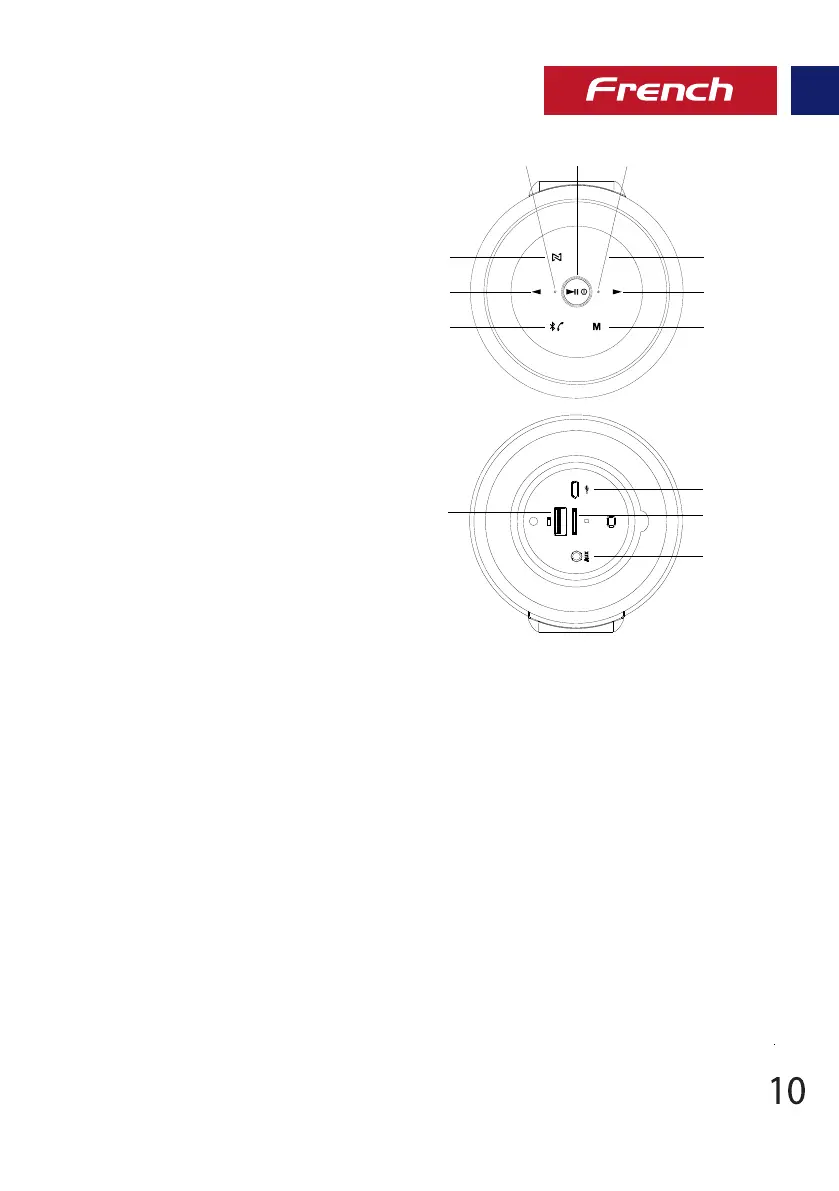 • L’enceinte s’éteindra automatiquement dans 10 minutes en absence d’appareil appairé.