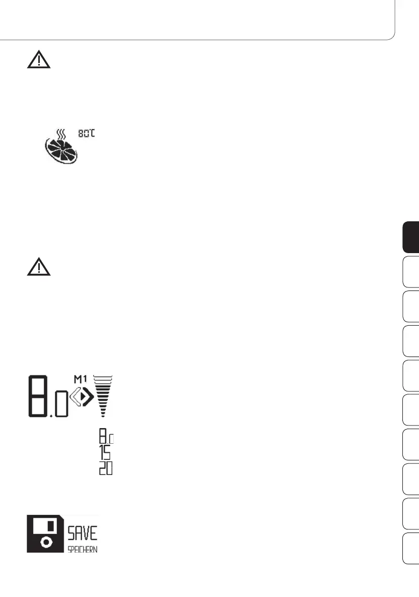 ausgewählten Drehzahl wird durch die Anzeige „Save“ bestätigt: