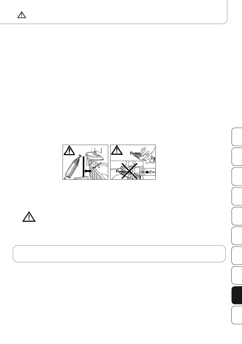 • Bär eller drag aldrig apparaten genom att hålla den i nätkabeln. Dra ut kabeln ur