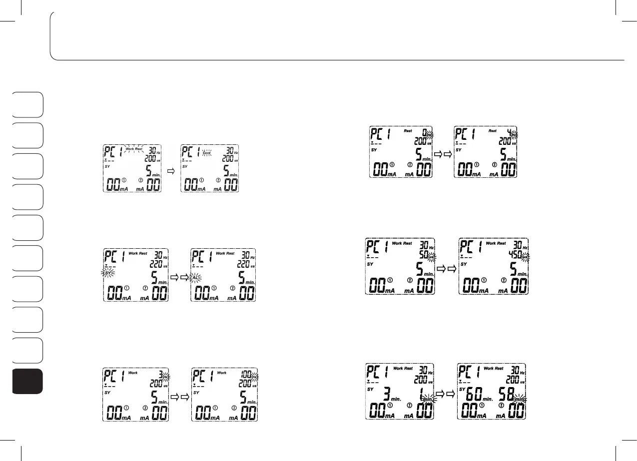 Paina uudelleen ”S”-painiketta (H) ja pulssin leveys vilkkuu. Paina joko