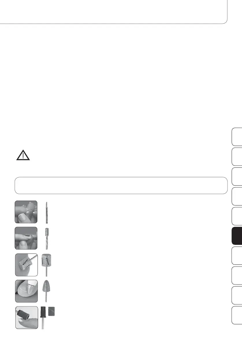 voorste ballen en aan de zijkant van de grote teen. Bewerk de eelt met de saffierkegel, of nog beter met de
