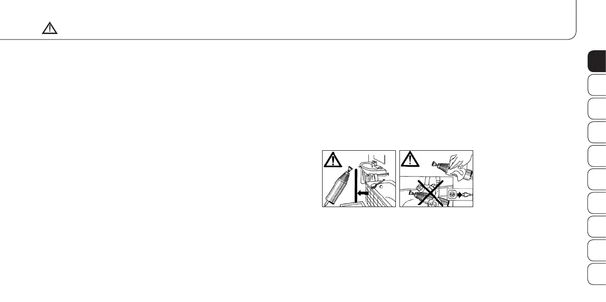 • Das Gerät niemals am Netzkabel tragen oder ziehen. Ziehen
