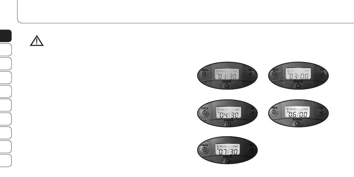 die gewünschte Reinigungszeit (1:30, 3:00, 4:30, 6:00, 7:30