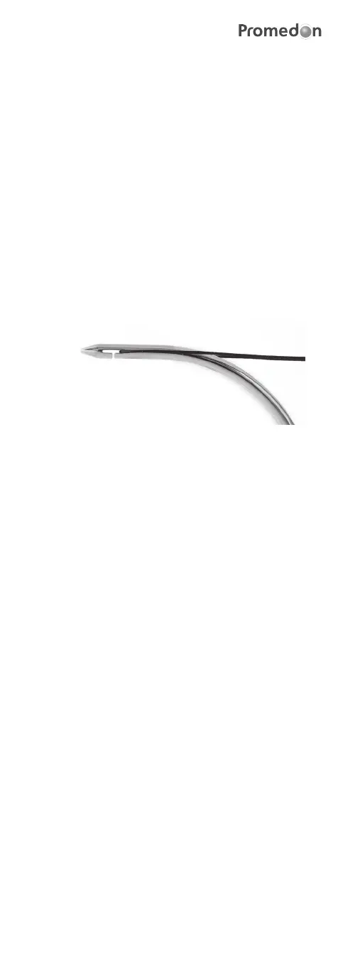 9. When the tip of the needle and the suture loop appear at the opening of
