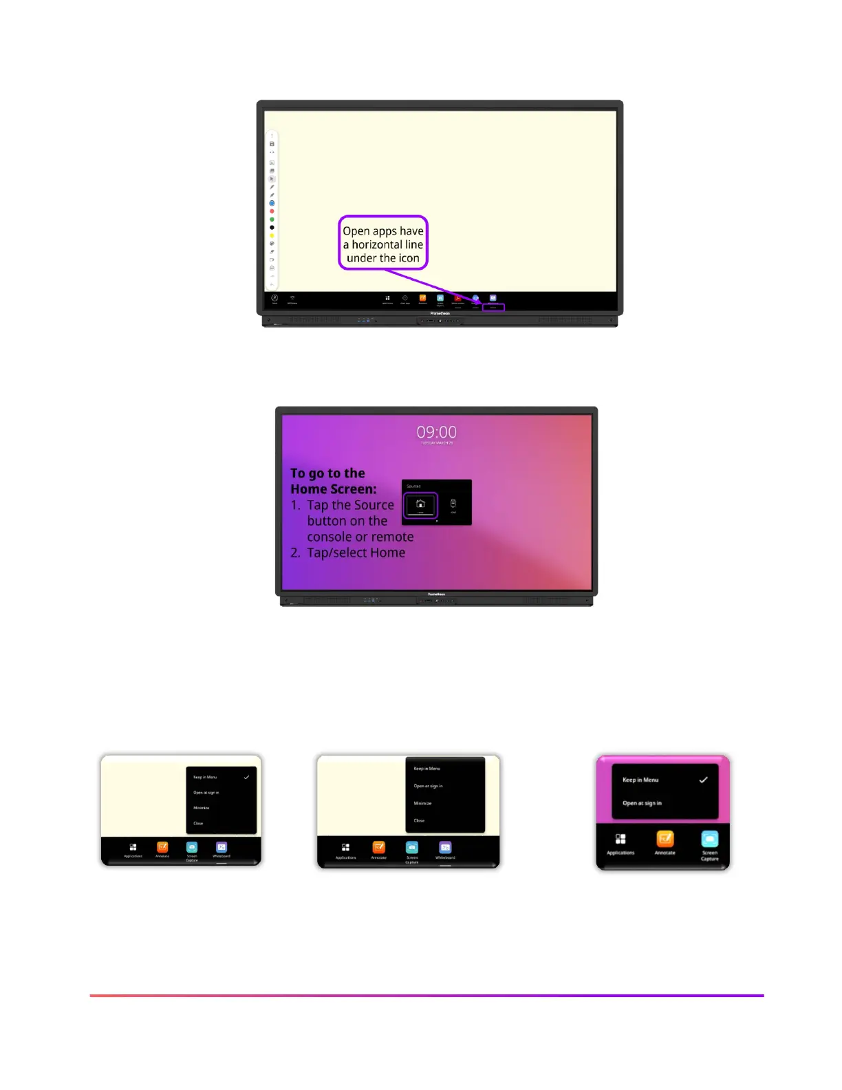 application on the ActivPanel, while a long tap reveals a menu where you can choose to what you