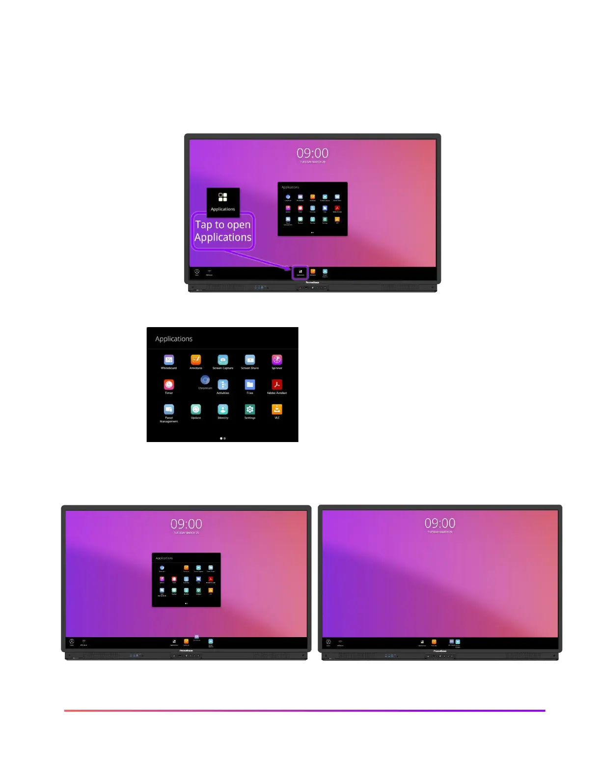 By tapping the Applications icon in the ActivPanel 9 Menu, you will gain access to the