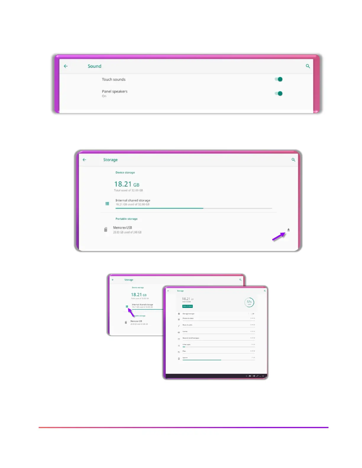Storage settings allow you to view storage on your ActivPanel and by clicking the arrow, you can