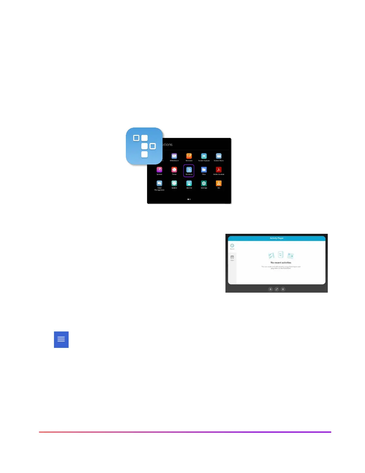 To access your activity on your ActivPanel, bring up the Menu, tap Applications, and select