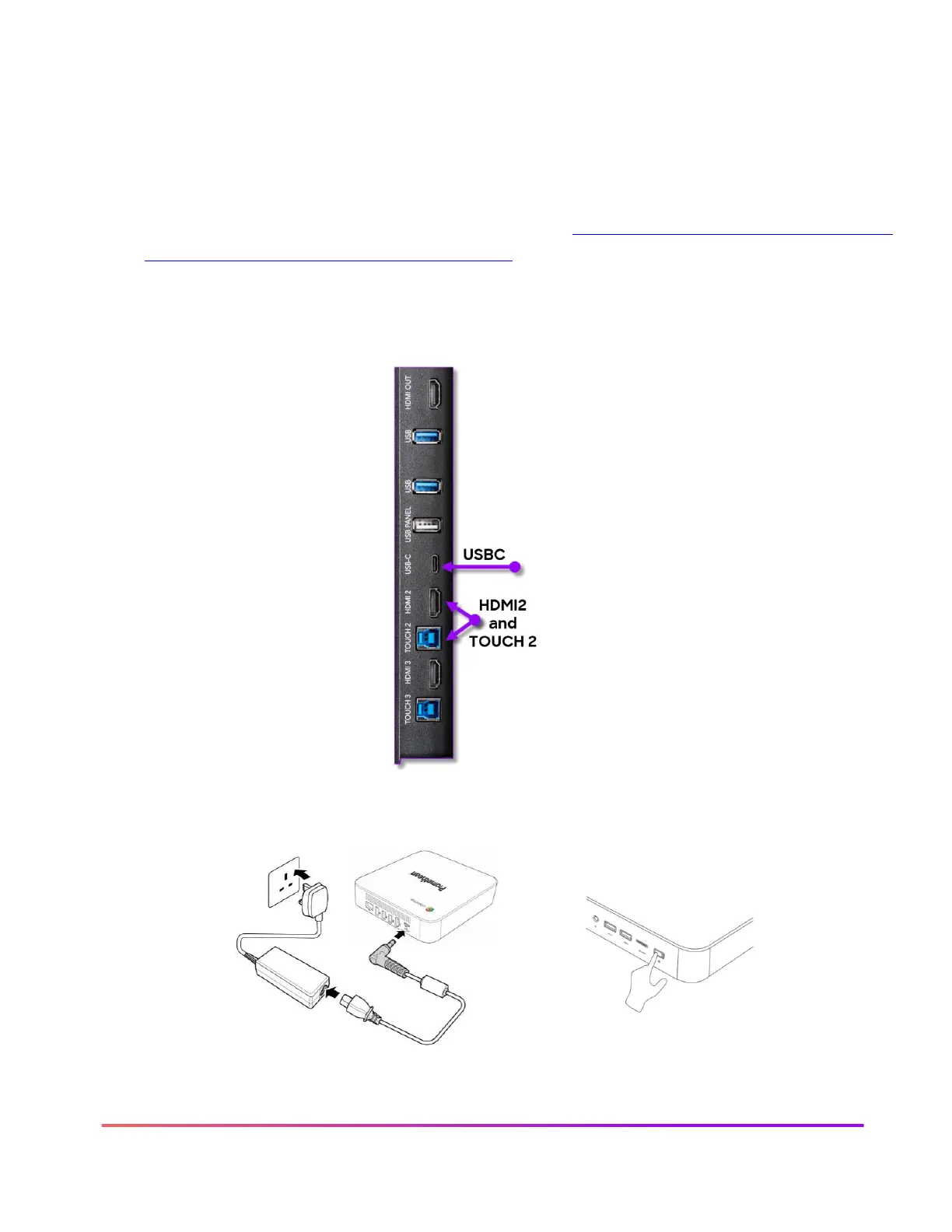 Connect your HDMI and USB touch cables to the HDMI 2 and Touch 2 ports or connect to the USB-