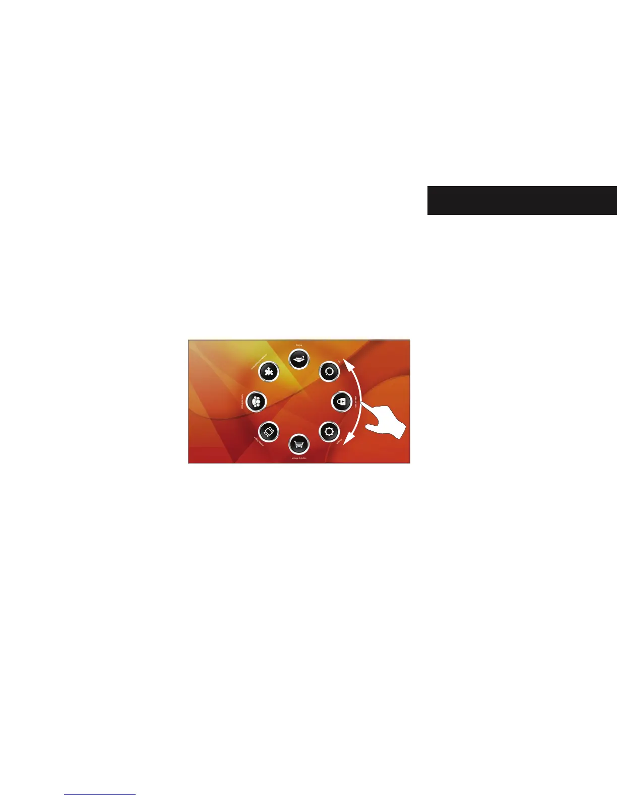 The ring of buttons on the Main Menu and Activities and Applications screens can be rotated around the centre of the