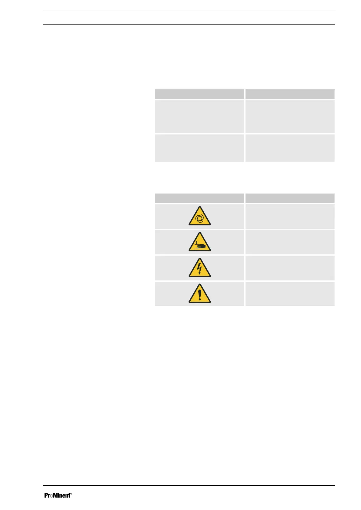 Warning signs Type of danger