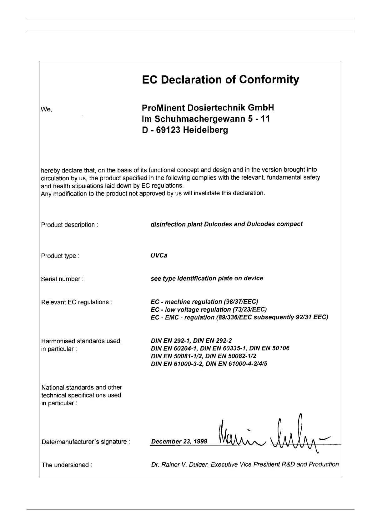 ProMinent Dulcodes M - EC Declaration of Conformity