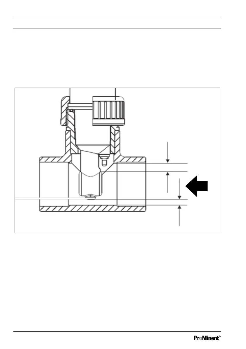 Abb. 6: Einbaulage des Sensorstyps ICT5 im T Stück (DN40)