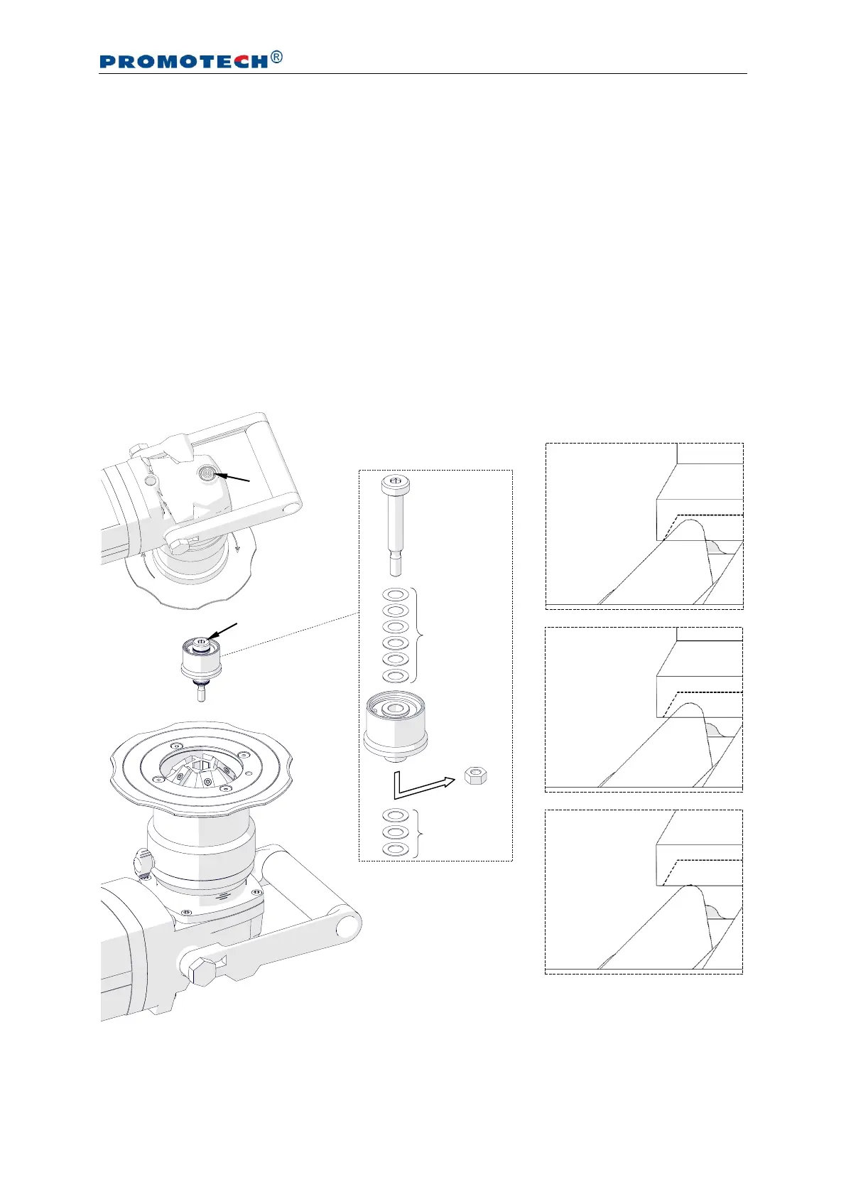 the roller with the 5 mm hex wrench (2). Use such a number of washers to keep a little