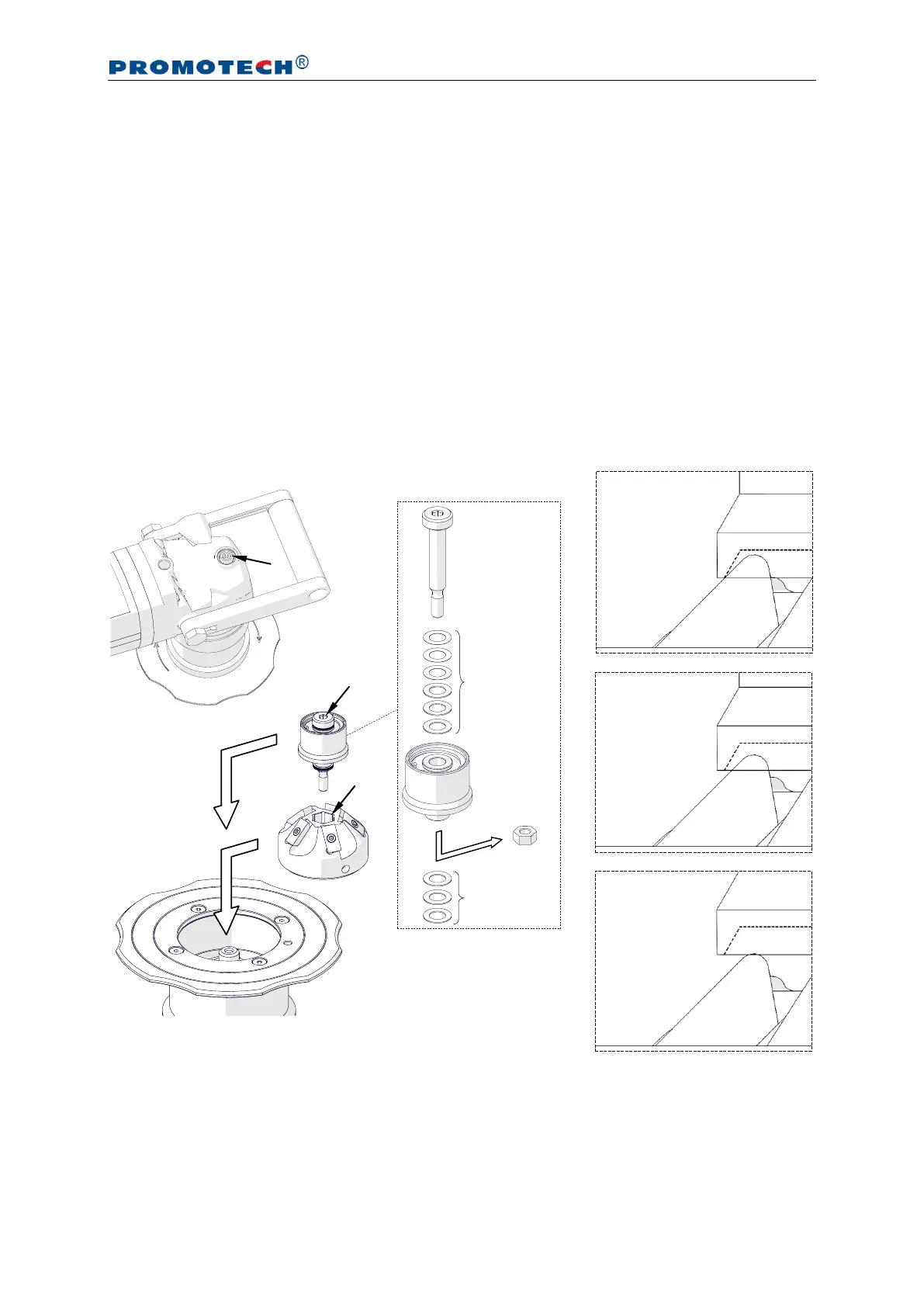 roller with the pivot pin using washers (5), and then place the roller on the milling head