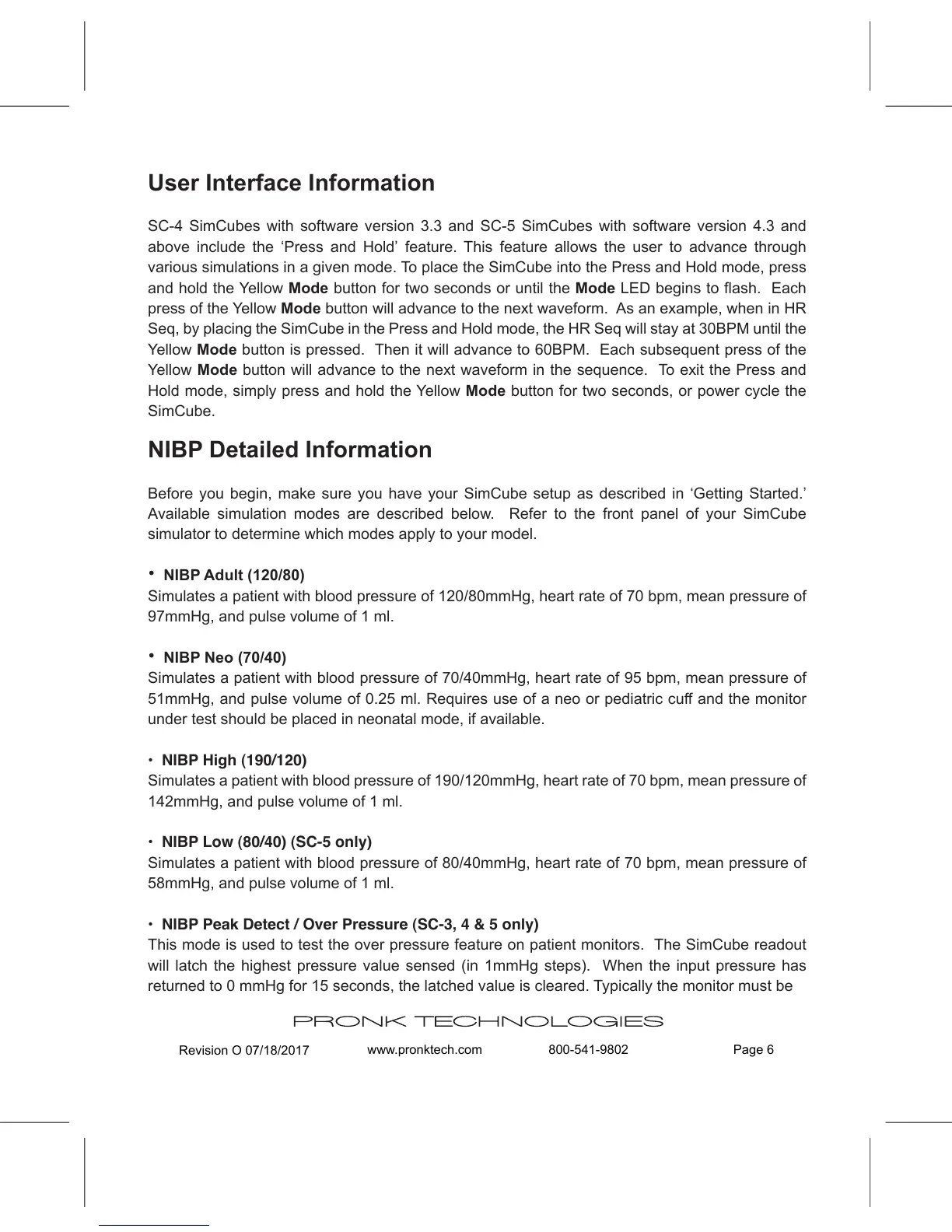 • NIBP Peak Detect / Over Pressure (SC-3, 4 & 5 only)