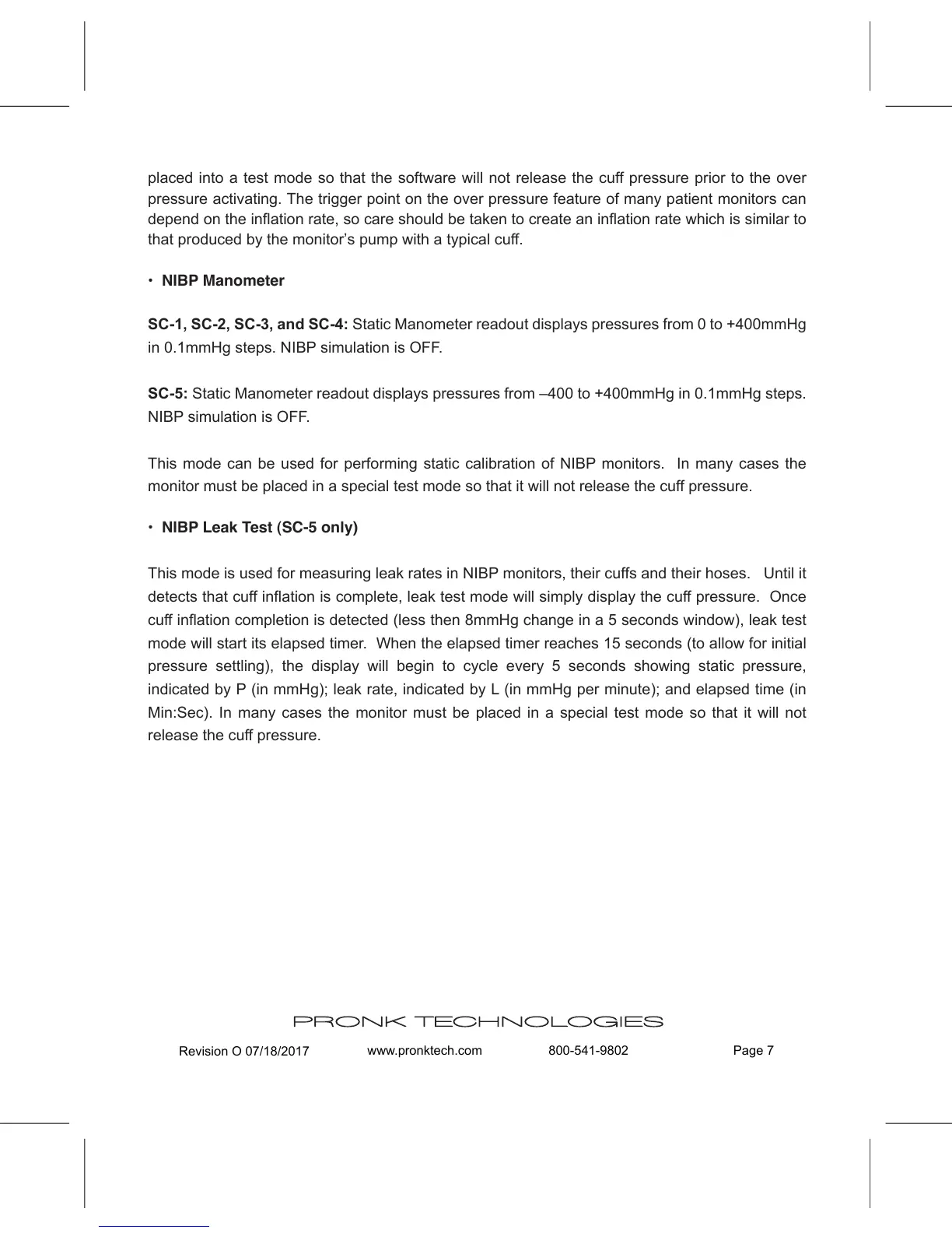 This mode can be used for performing static calibration of NIBP monitors. In many cases the