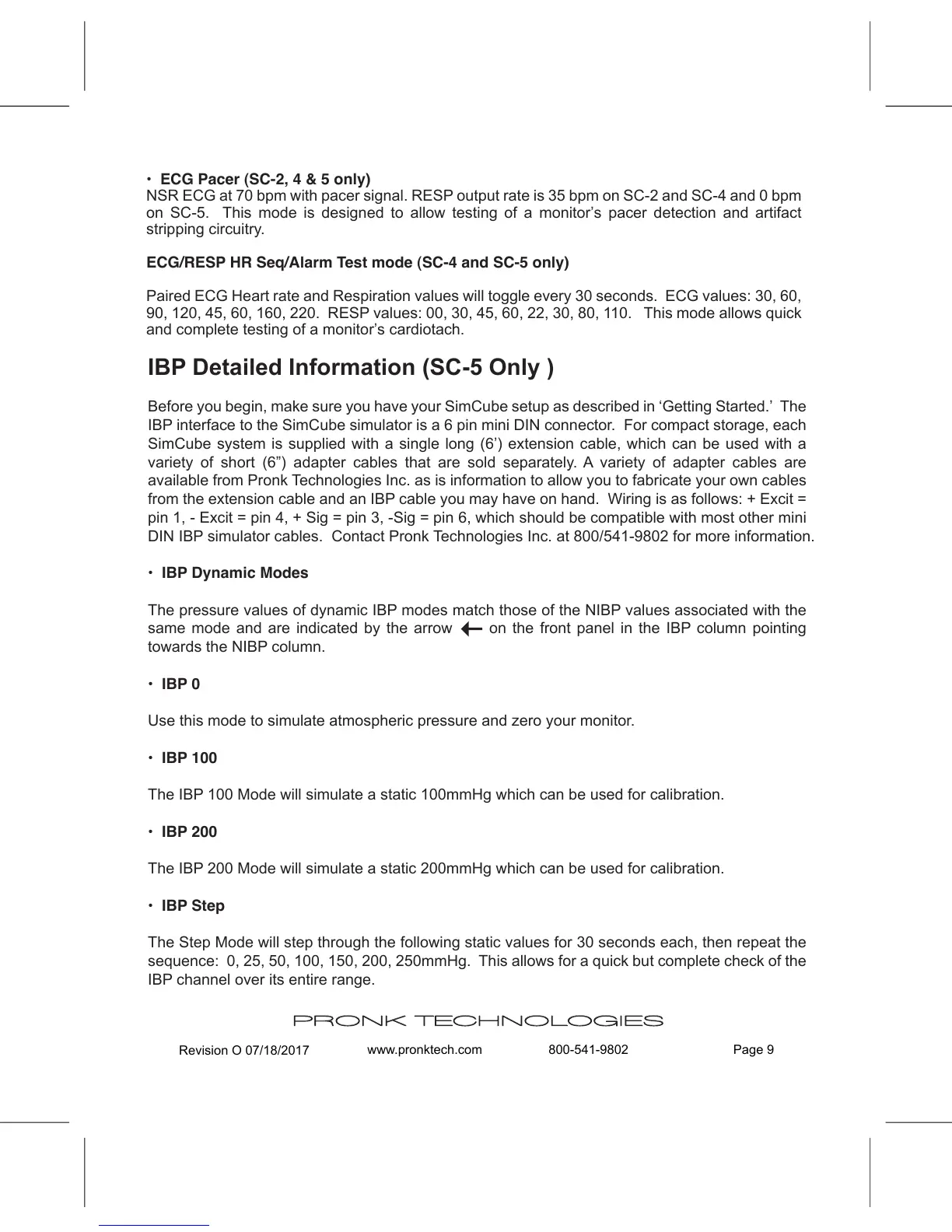 DIN IBP simulator cables. Contact Pronk Technologies Inc. at 800/541-9802 for more information.