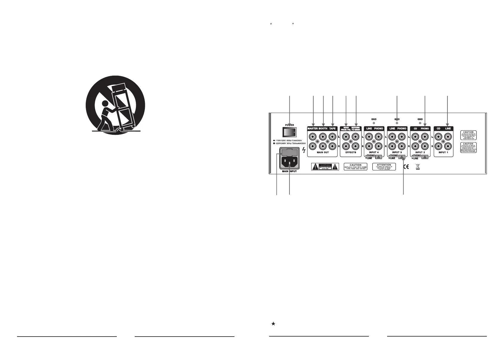 (39) The PHONO input for channels 2 to 4 are for connecting a turntable.