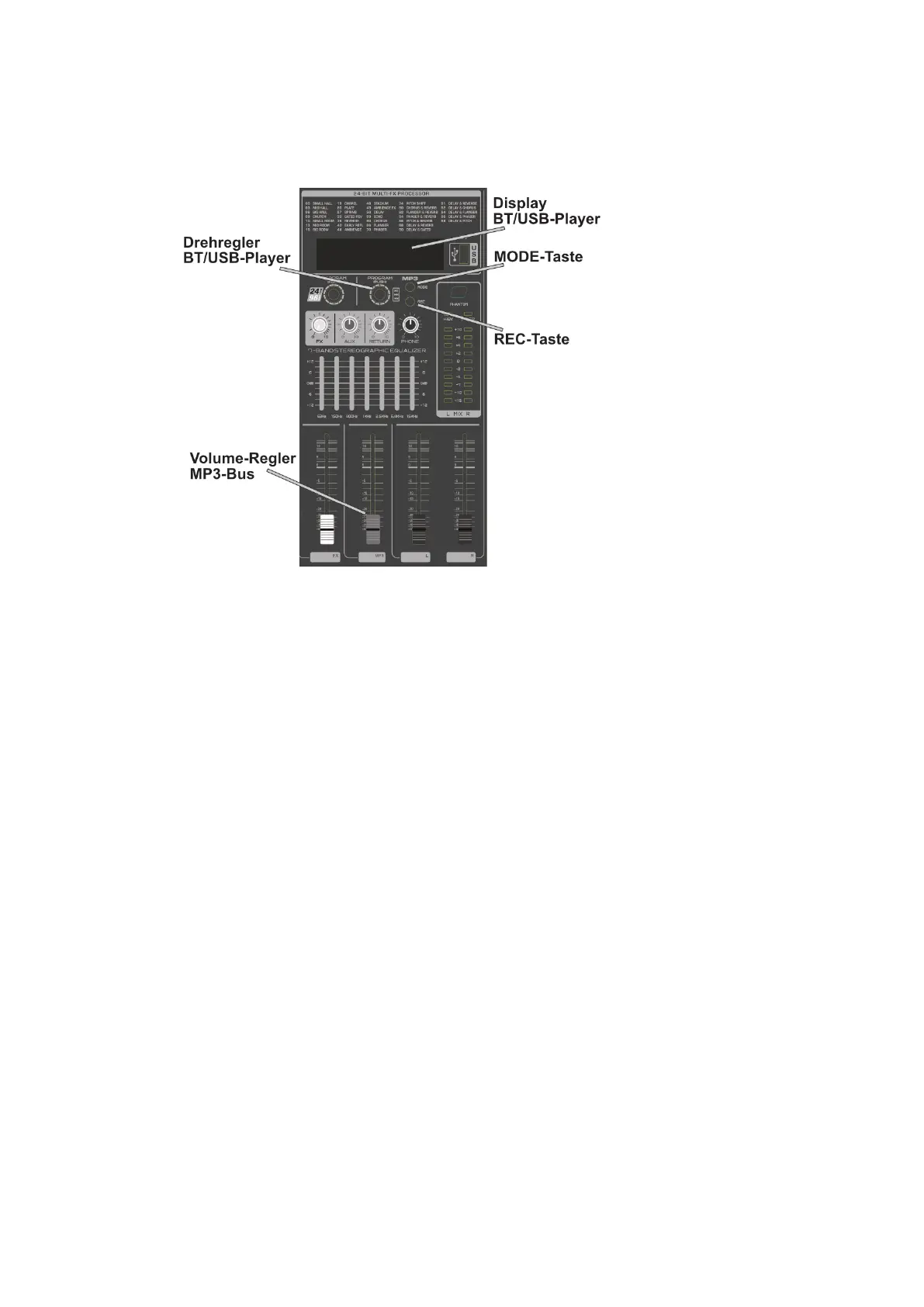 Das Ausgangssignal des BT/USB-Player wird auf den MP3-Bus des Mischpults
