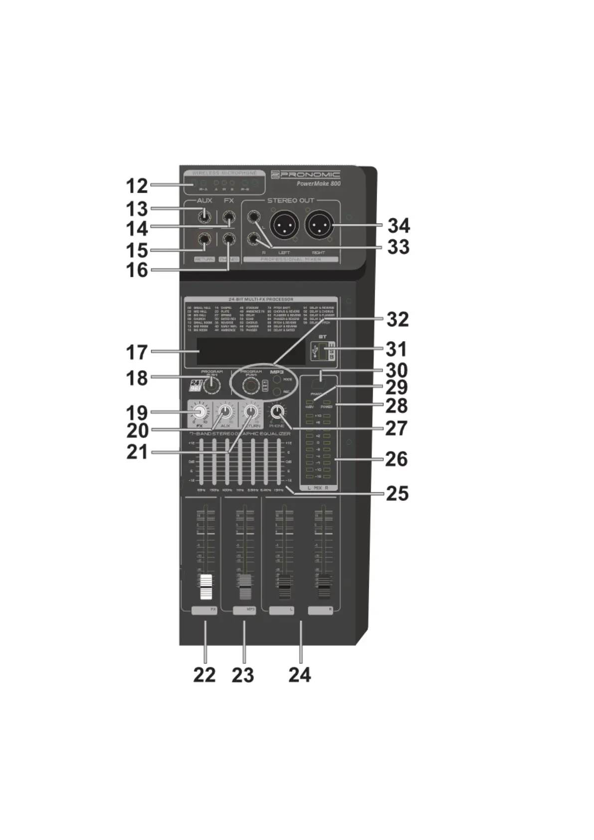 Pronomic PowerMake 600 - Front Panel Connections and Controls; Bus and Main Section