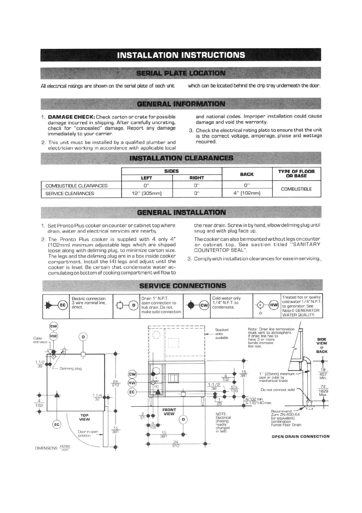 Pronto CA1E - Serial Plate Location; General Information; Installation Clearances; General Installation