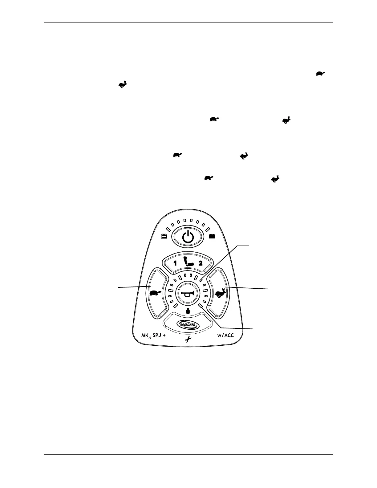• Adjust Speed in 20% Increments (5 Speed Mode) - Press the tortoise button ( )