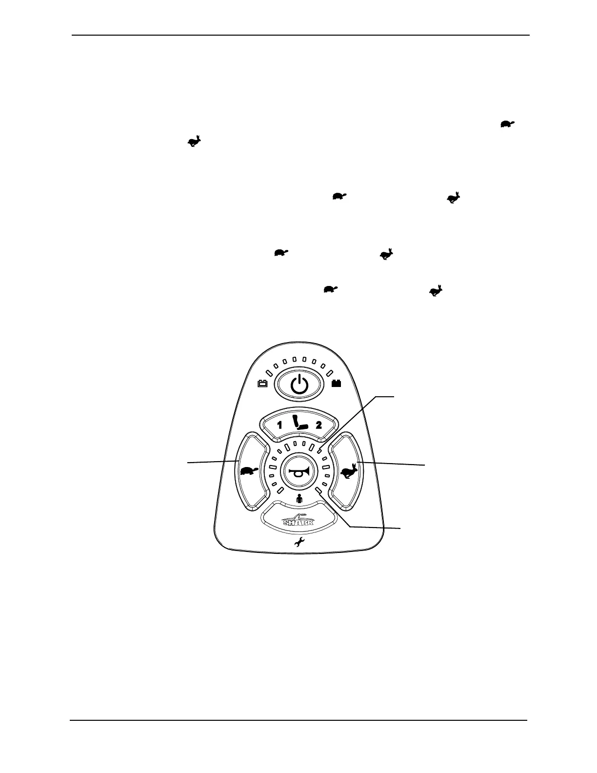 • Adjust Speed in 20% Increments (5 Speed Mode) - Press the tortoise button ( )
