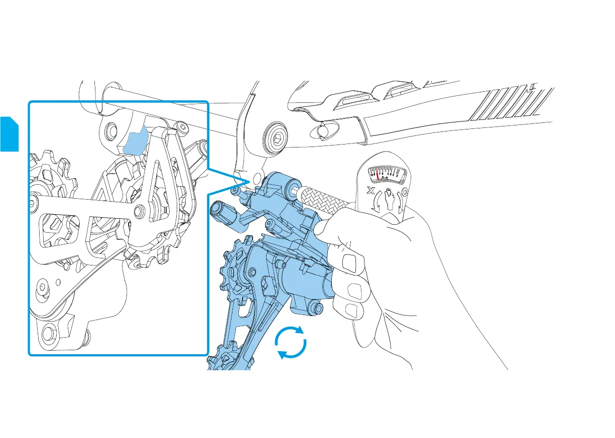 ĺ Aprieta el desviador trasero a un par de 10 Nm.