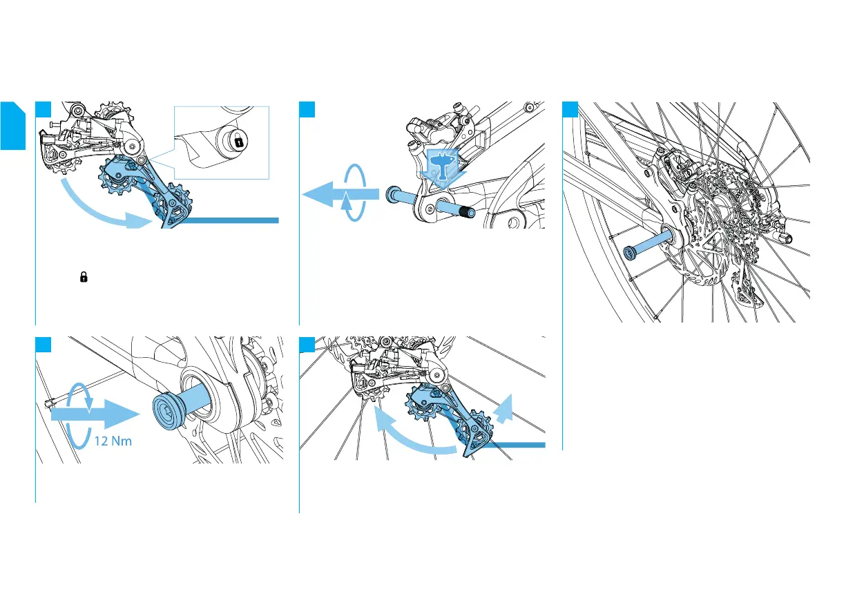 and tighten the thru axle to a torque of 12 Nm.