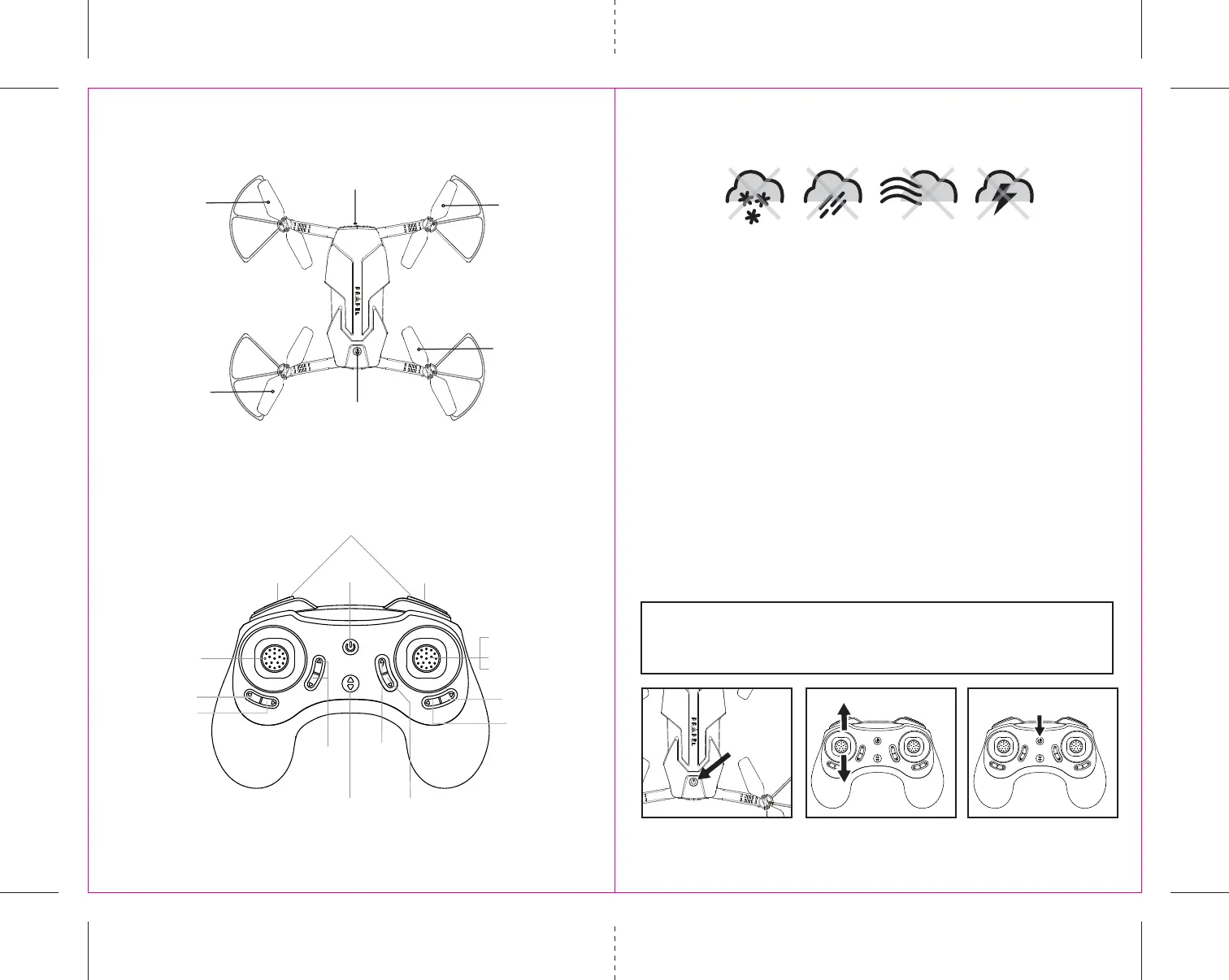 and hold for a few seconds (see diagram D1).The red and white LED lights on the drone should begin to flash