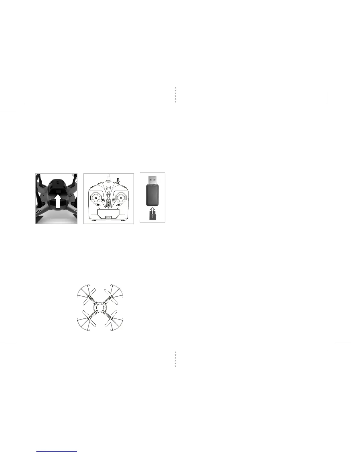 1. Ensure that the camera module is securely attached and locked onto the copter. Insert the mircoSDHC