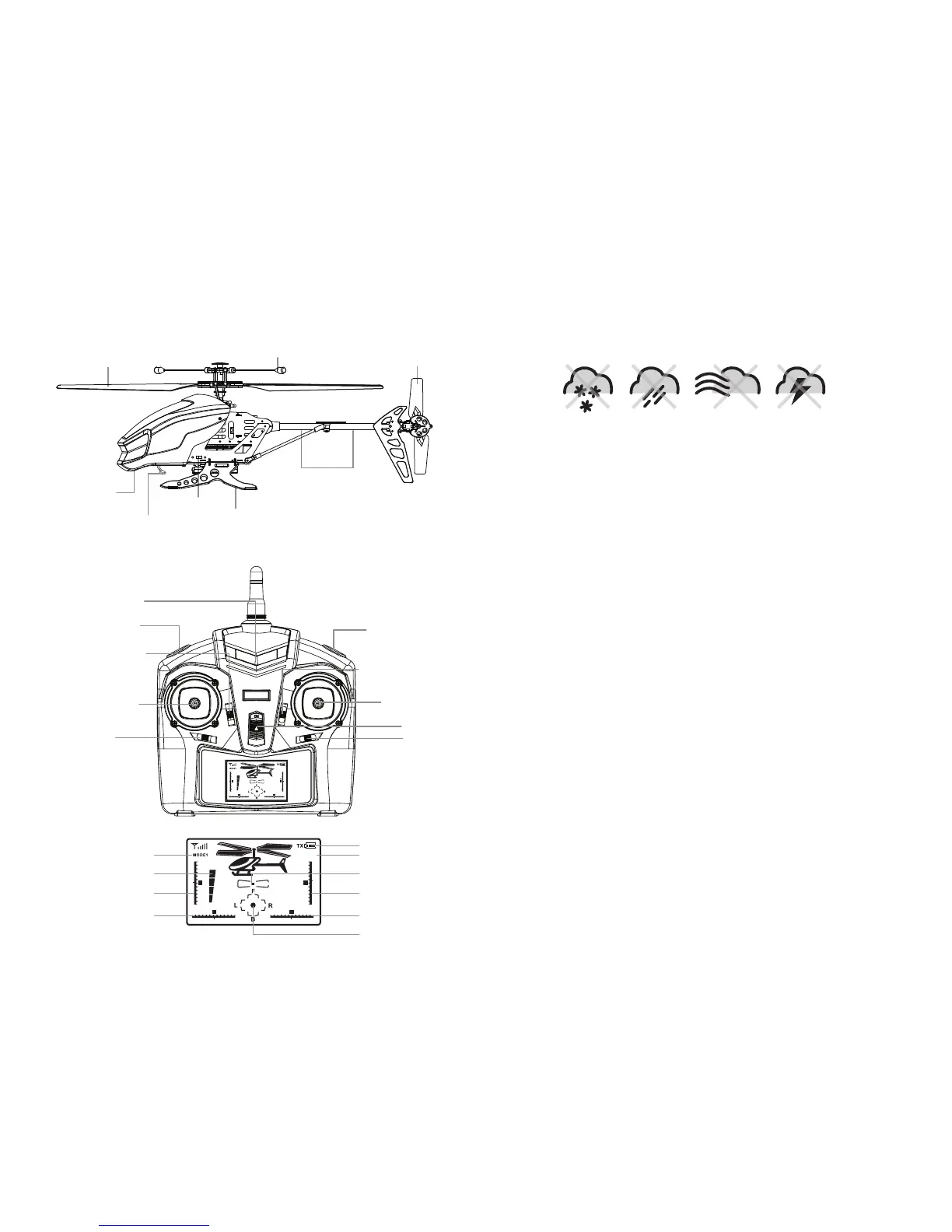 • For best performance, it is recommended that you operate the helicopter in zero wind conditions.