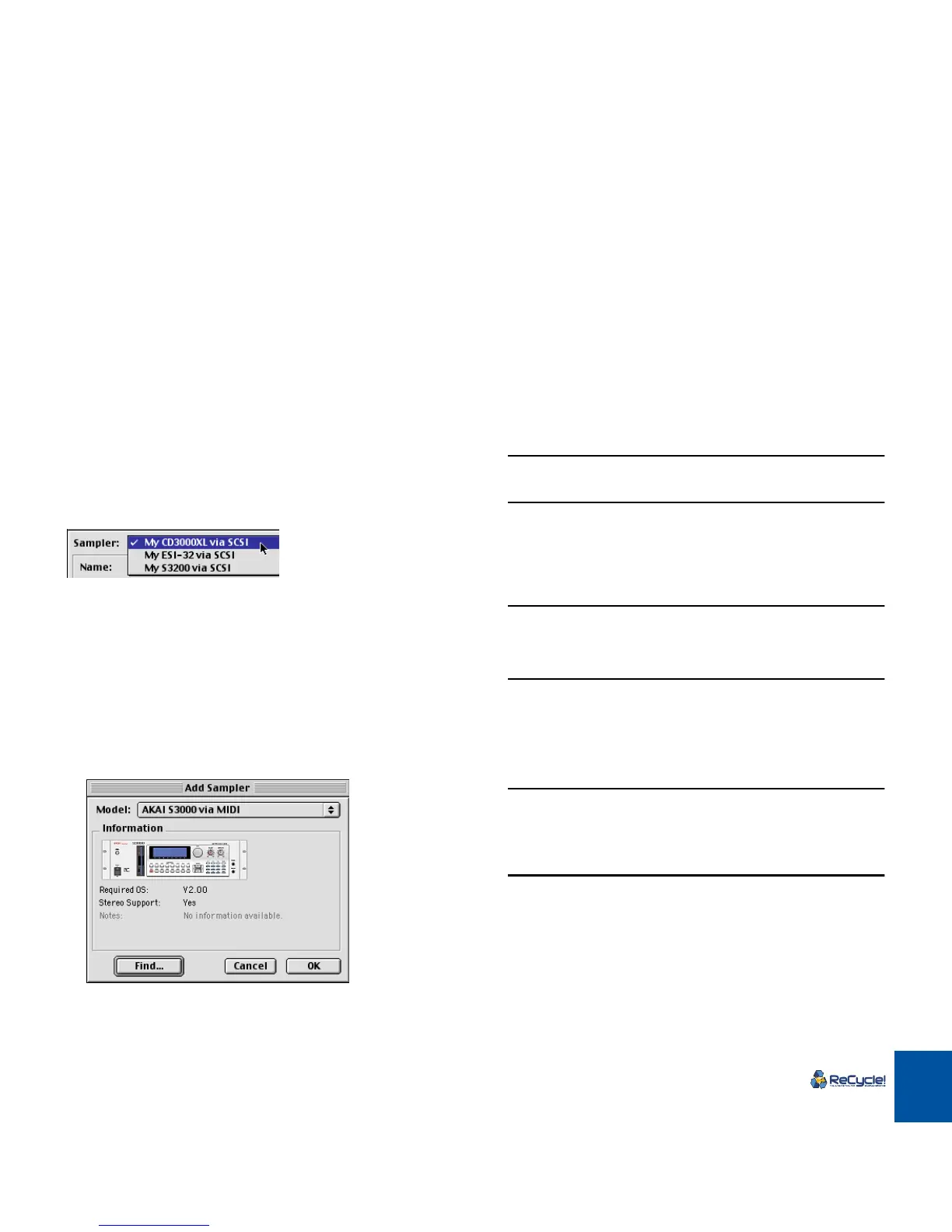 between two devices. If your sampler model isn’t supported by ReCycle you